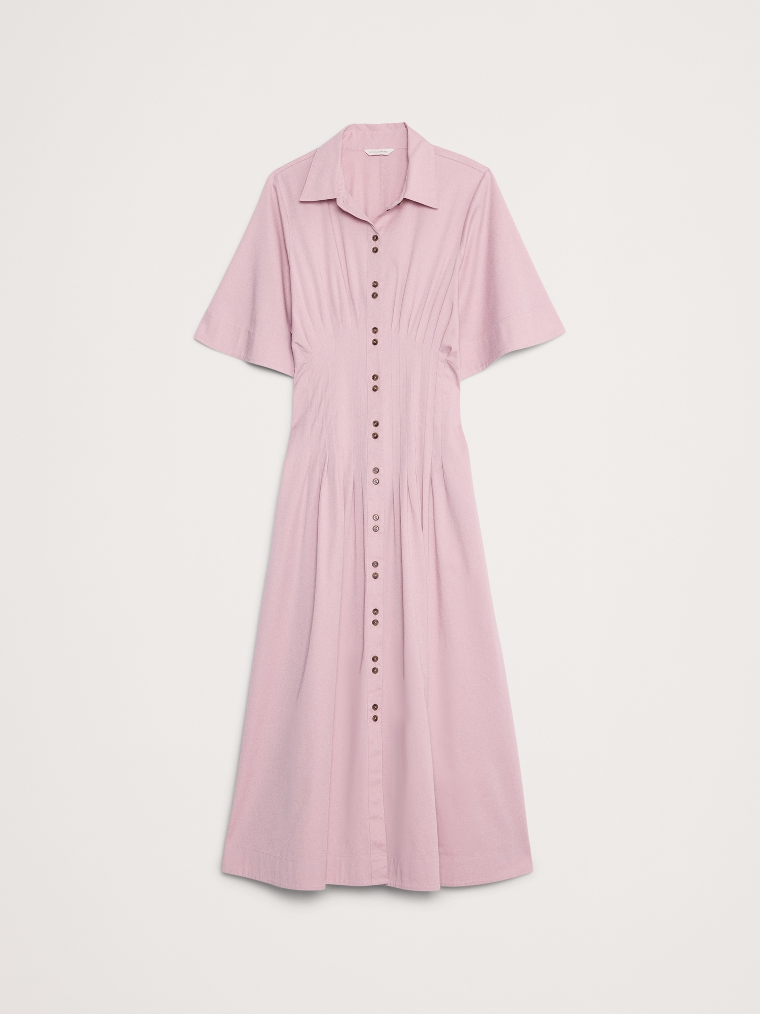 Stretch-Cotton Poplin Pintuck Long-Midi Shirt Dress