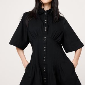 Deconstructed, reconstructed. This mini dress nods at the season’s drop-waist trend with corset-inspired pleats at the waist—in our 100% cotton poplin.