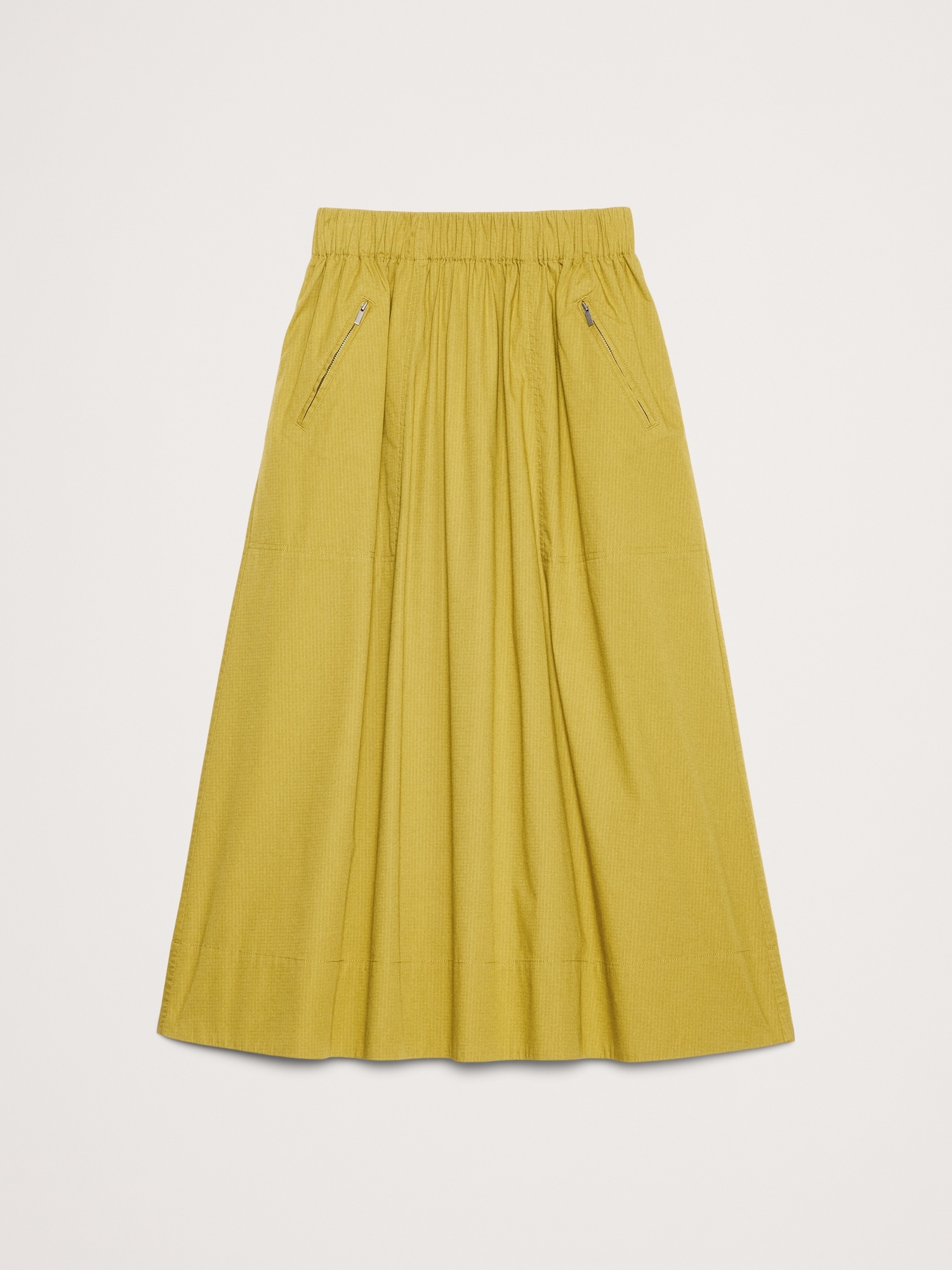 A classic A-line skirt made easy with an elastic waistband and a utilitarian twist thanks to zippered front pockets—in our stretch-cotton ripstop fabric, with its signature grid texture.
