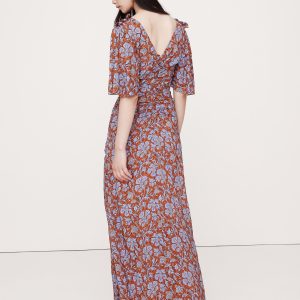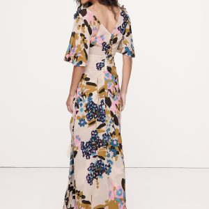 Stretch-Crepe Flutter-Sleeve Maxi Dress