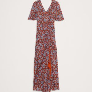 There’s so much to love about this dress: the stretch-crepe fabric, the ruched bodice, the flutter sleeves, and the drawstring slit detail (so you can reveal or conceal as you like). No wonder it’s one of our favorite dresses this year. Fit Flare: Fitted bust and waist with a flare skirt. V-neck. Invisible zip at back. Drawstring slit detail with tassel ties. #817746