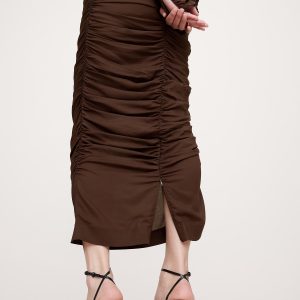 Made from intricated ruched panels, this figure-hugging midi dress is cut from our favorite crepe fabric—one we love for its dry handfeel, timeless look, and softness against the skin. Sheath fit. Square neck. Invisible zip at back. Center back vent. Fully lined. #829272
