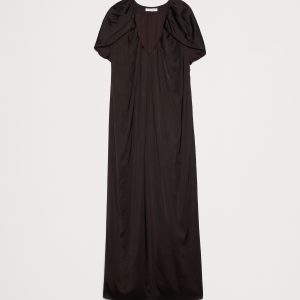 Make an entrance in this maxi dress. There’s a lot to love: the stretch satin fabric, the cape-sleeve detail, and the statuesque, column silhouette.