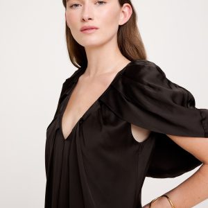 V-neck with cape detail.