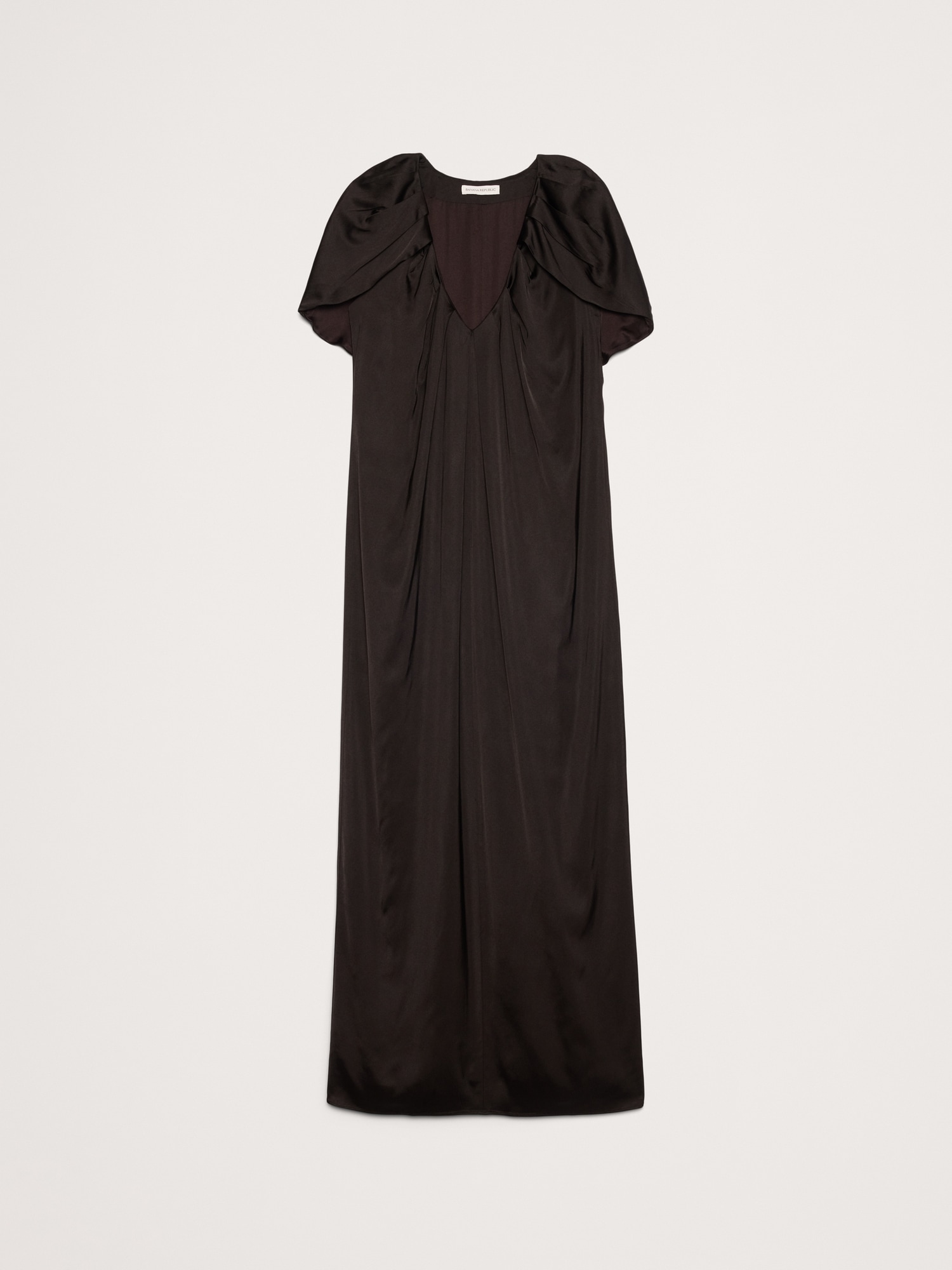 Make an entrance in this maxi dress. There’s a lot to love: the stretch satin fabric, the cape-sleeve detail, and the statuesque, column silhouette.