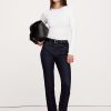 A-Line fit: High rise. Fitted waist with a flare silhouette.