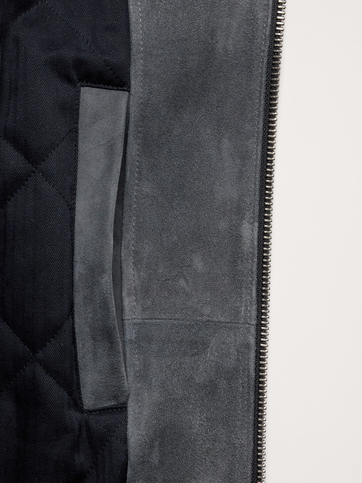 We stuck to a classic bomber in a relaxed fit so the luxurious suede really shines, and we added a quilted lining inside so it’s great for colder weather.