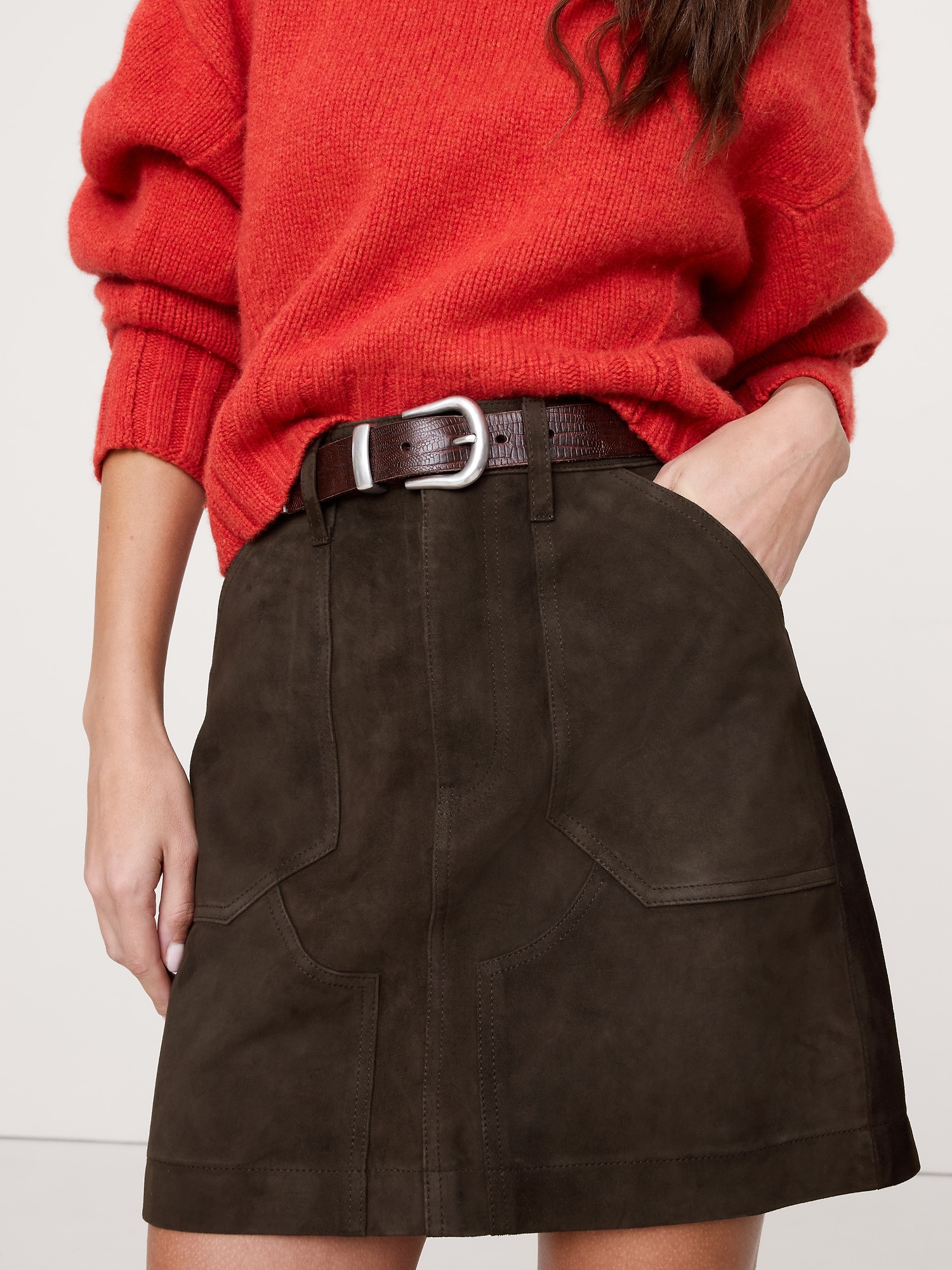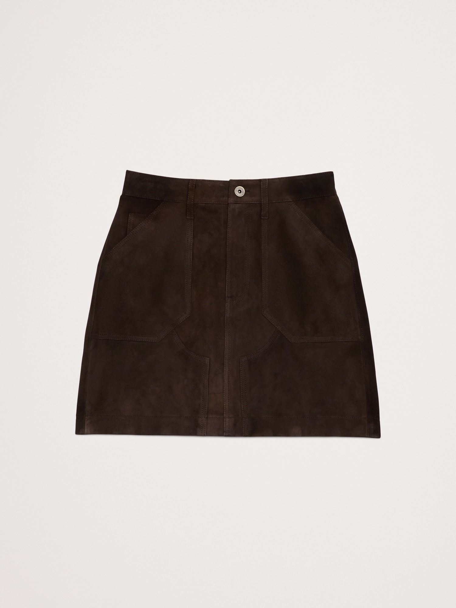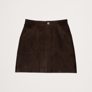 A luxurious take on a utilitarian silhouette, we cut this mini skirt is beautiful and soft goat suede with paneled, utility pocket details.