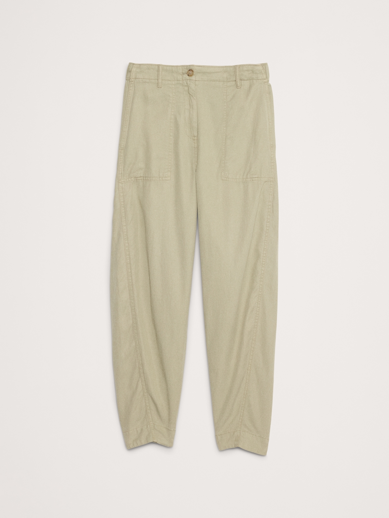 Our take on the season’s barrel-leg styles, we kept things leaning rugged-utility with topstitch detailing while this ultra-soft fabric made with TENCEL™, cotton, and flax keeps things feeling dressed up.