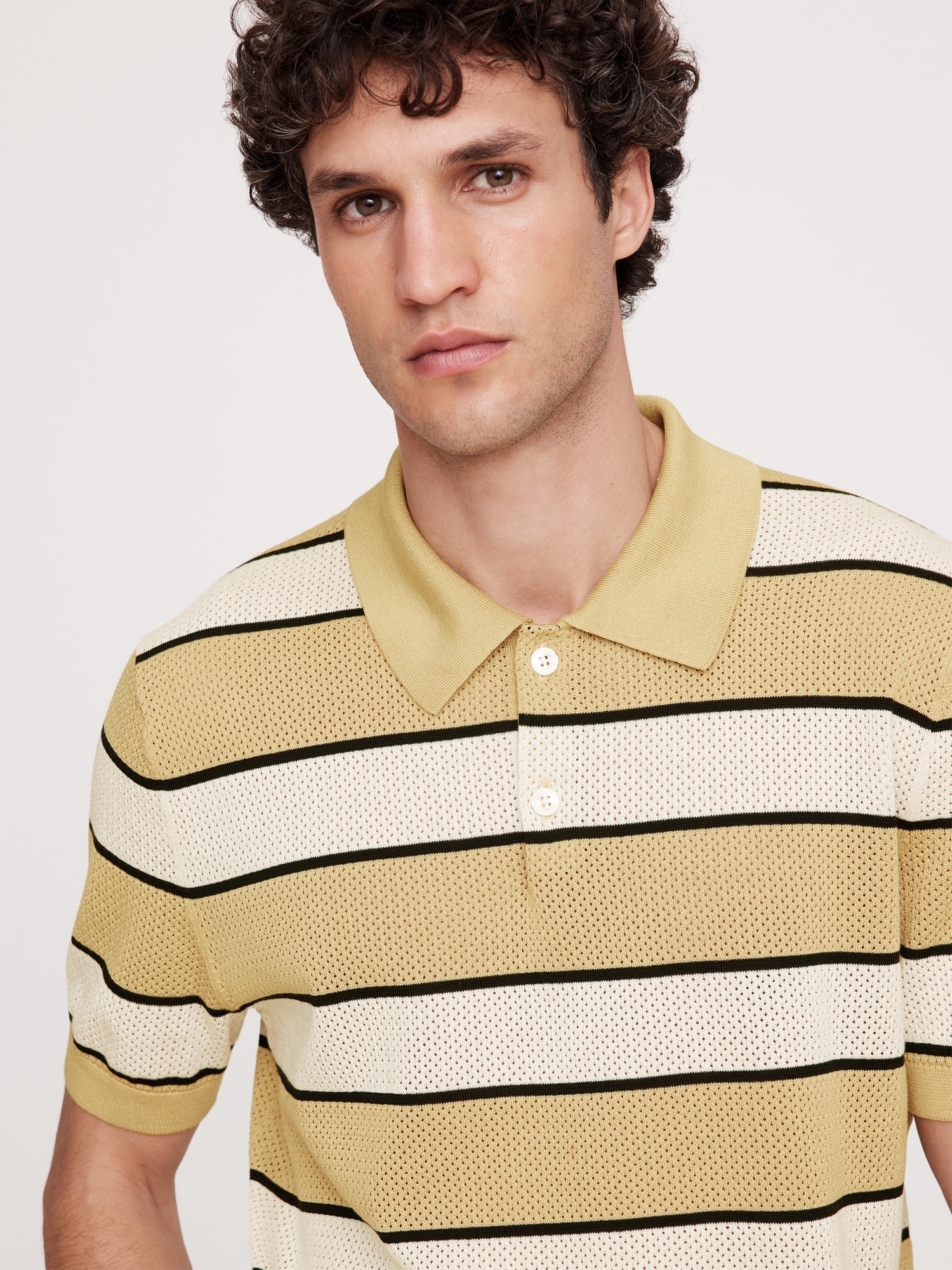 Our take on the season’s mesh trend, this cotton polo has an open knit similar to vintage athletic jerseys.