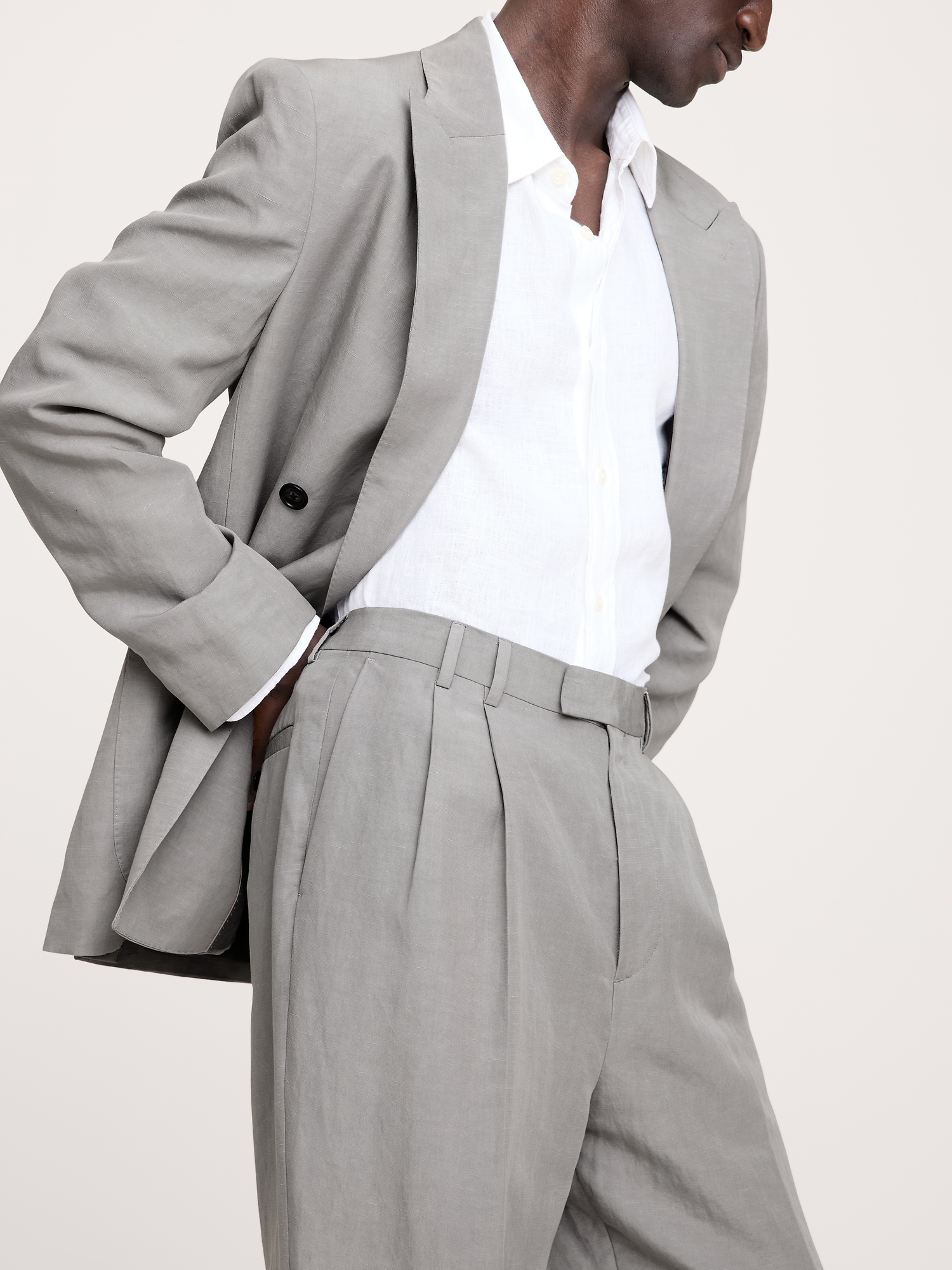 A very cool suit. We kept the fit relaxed for these wide-leg suit pants, crafting them in a silky blend of TENCEL™ lyocell and luxurious linen—an ideal choice in heat and humidity.