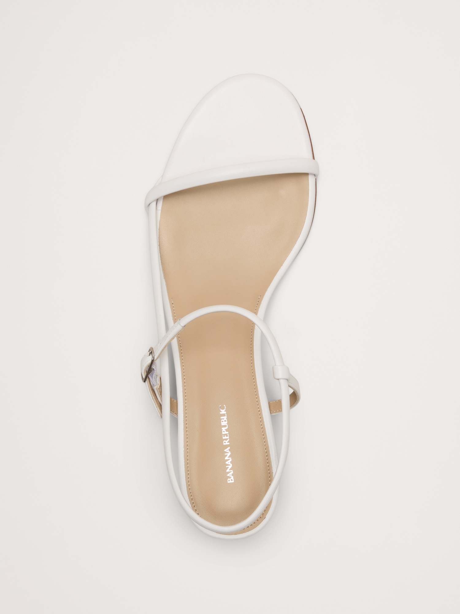 Set atop a modest kitten heel, these sleek almond-toe sandals are crafted with puffy, Italian leather straps that wrap around the foot and ankle for a secure fit.