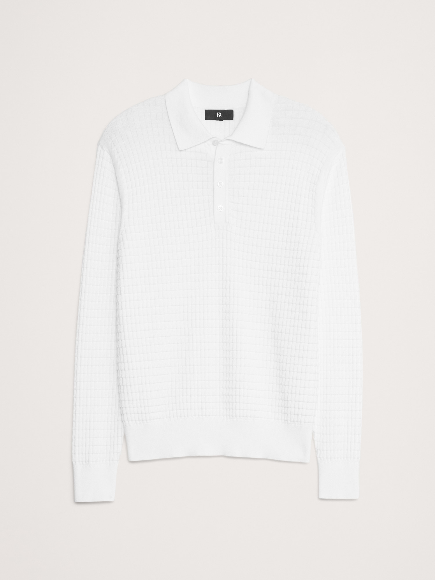 Textured Cotton Long-Sleeve Sweater Polo