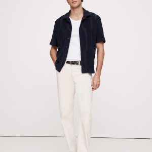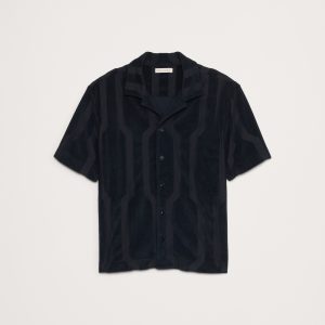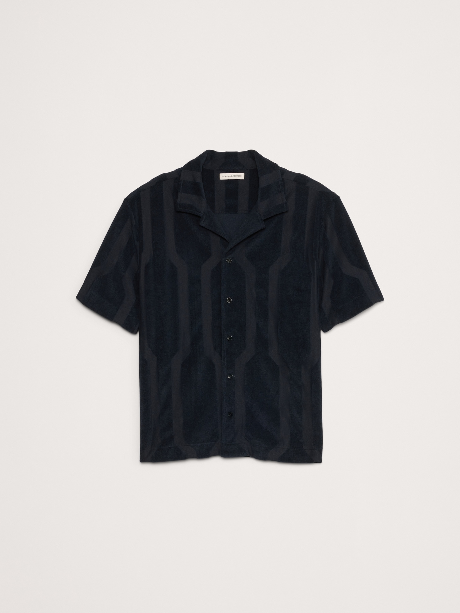 A classic resort shirt, made for warm-weather in a toweling terry fabric in a geometric pattern.