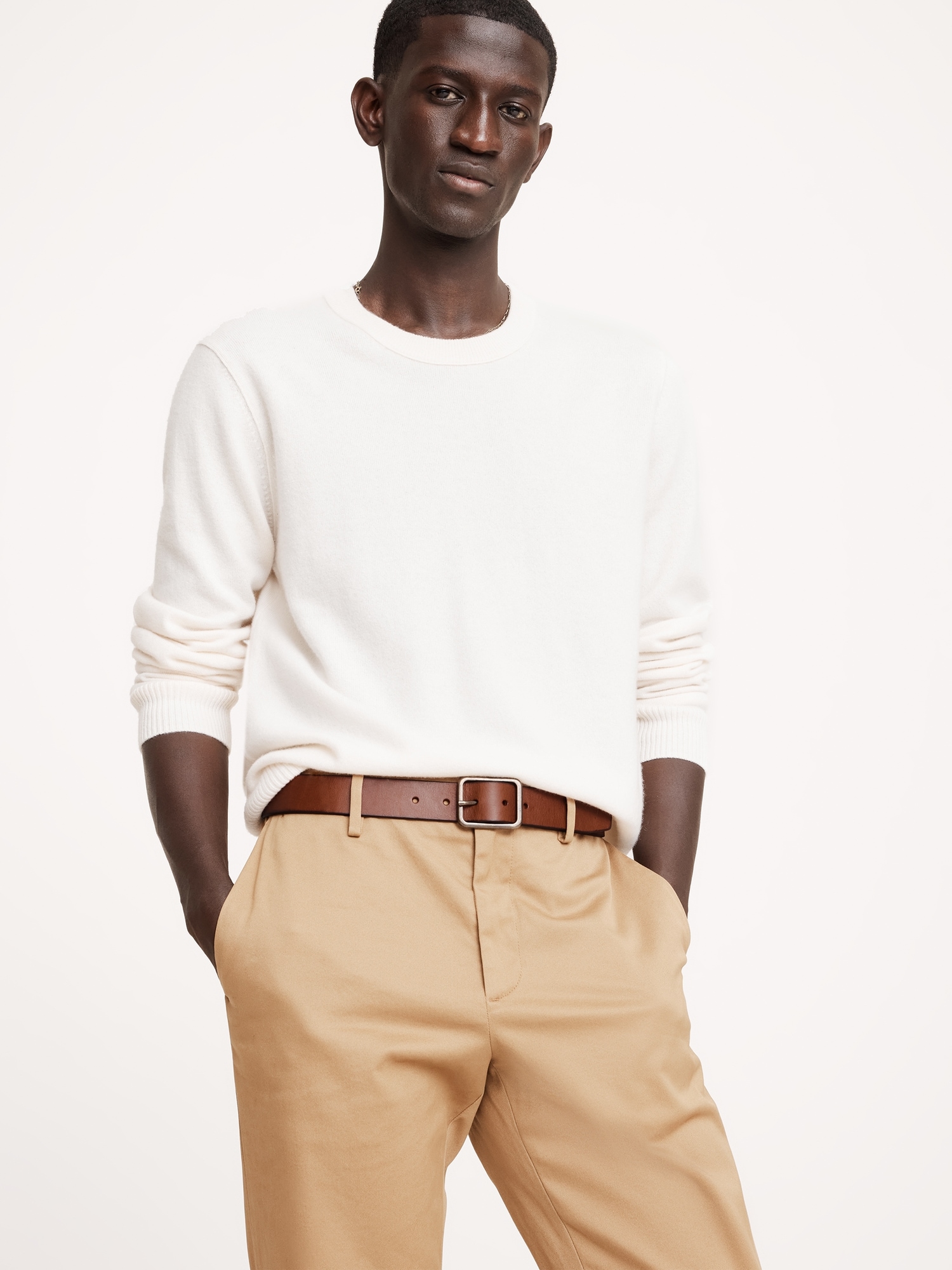 Sleek and streamlined, this sturdy leather belt is finished with beautifully burnished edges so it works just as well with jeans as it does smartly tailored trousers.