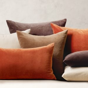 Everyday elegance, crafted of tonal cotton-velvet. Our elegant cotton-velvet pillow cover is expertly tailored for a refined finish and indulgent softness. Exposed brass zip closure with leather pull. OEKO-TEX® STANDARD 100 certification keeps you and your family safe from harmful substances (Certification number: 19.HIN.74318, Hohenstein HTTI). Pillow inserts are sold separately and are sized slightly larger than our pillow covers to create a fuller effect. Made in India. #541119