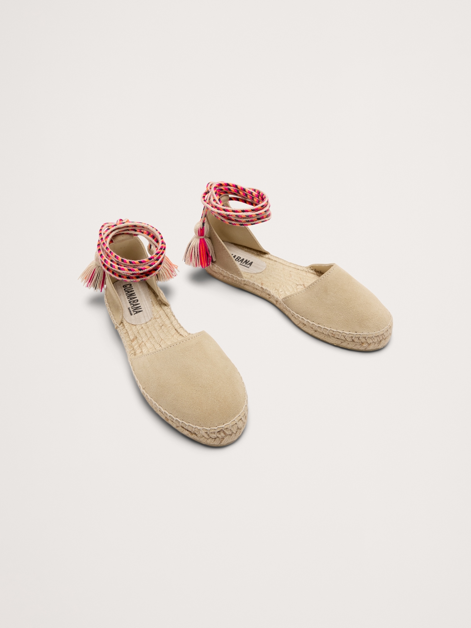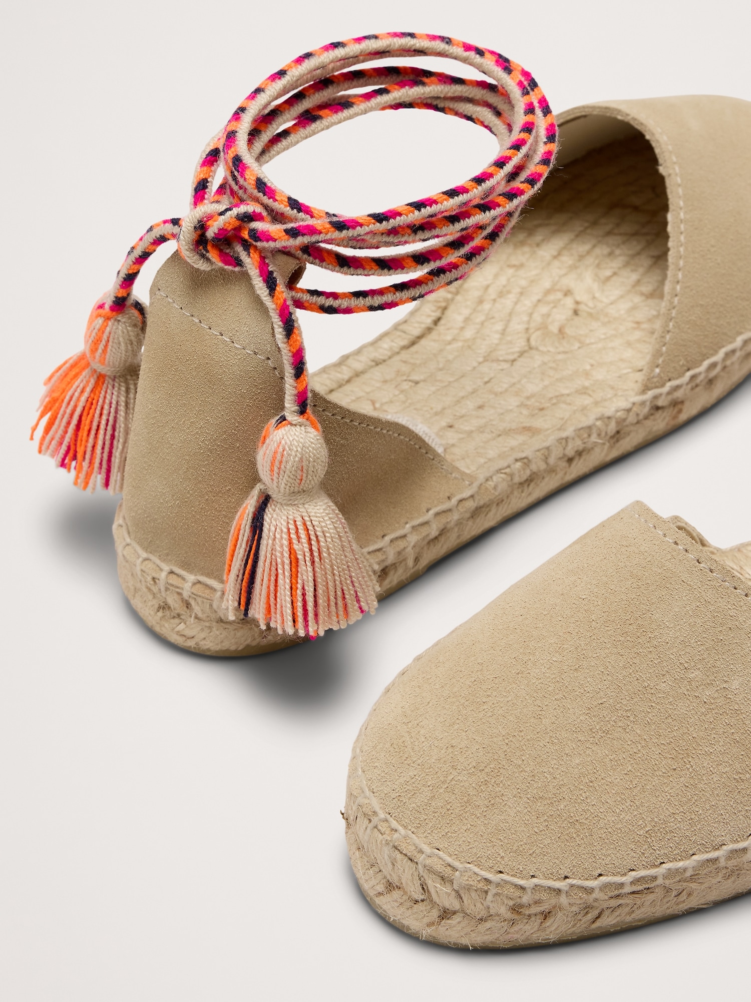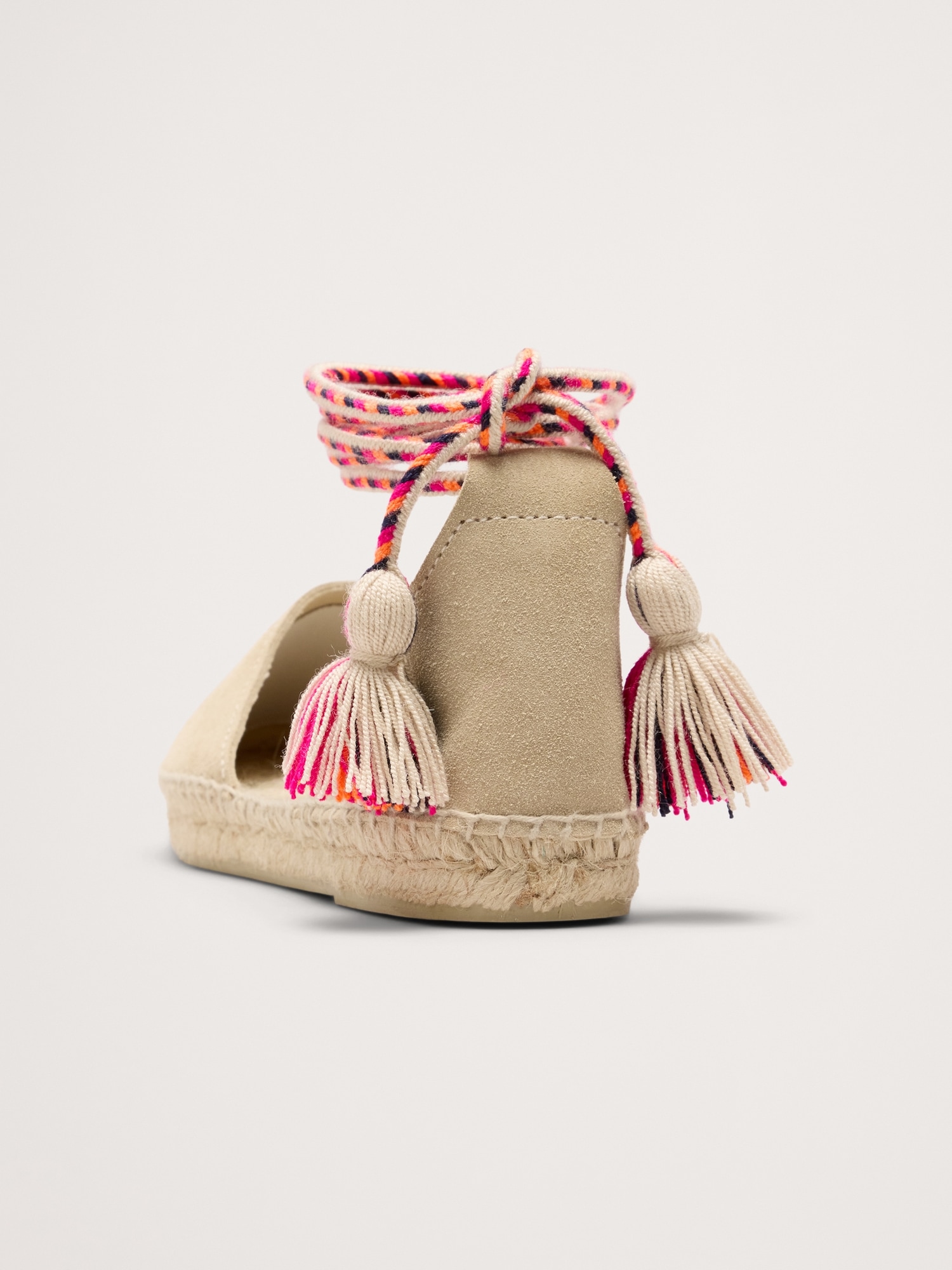 A reimagining of the classic Valencian espadrille, finished with a cord and pom-pom tie hand-crafted by Wayuu artisans.