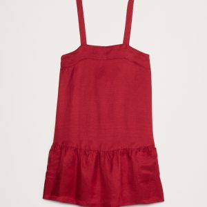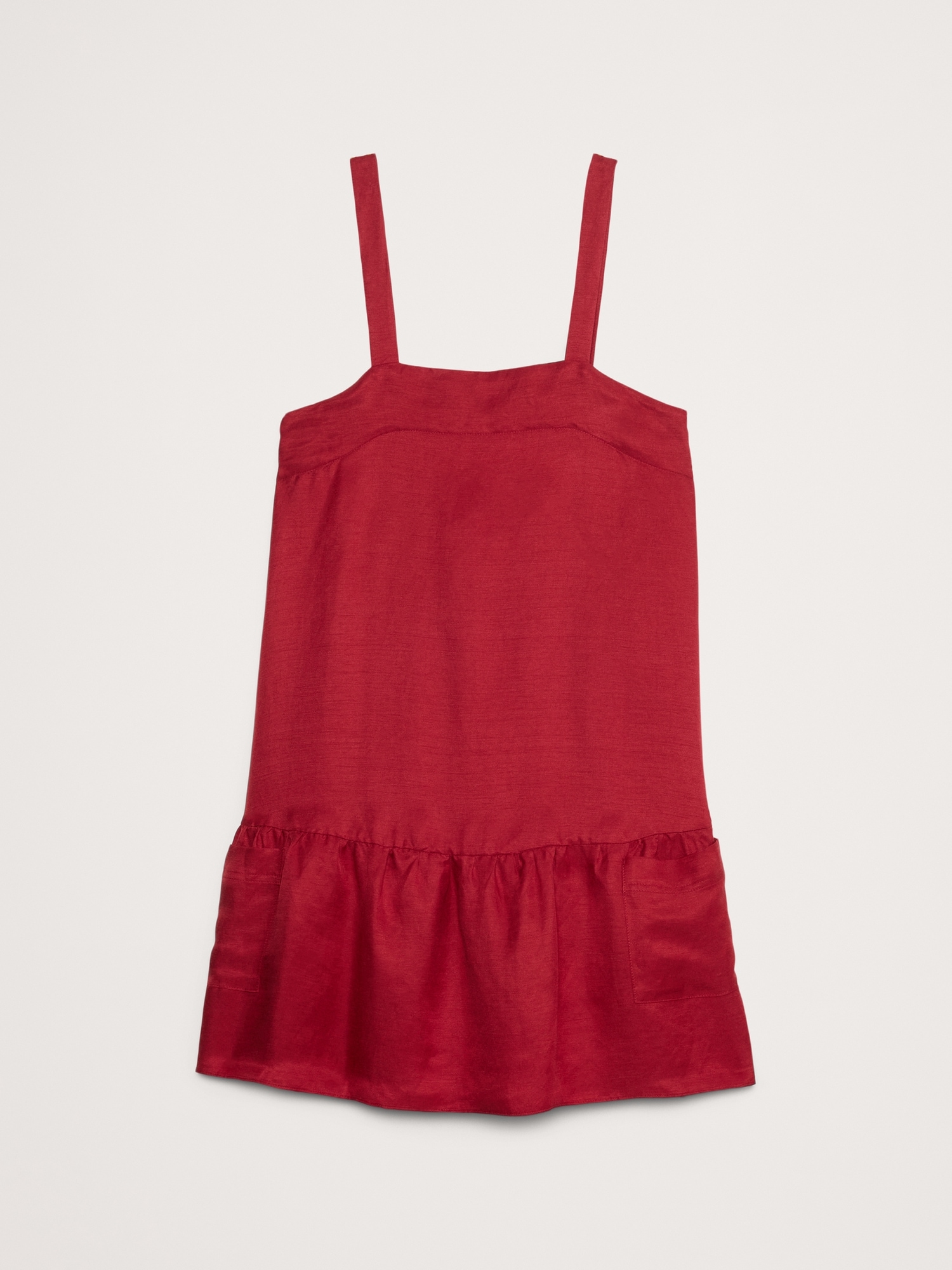The dress we’re packing for all our adventures. We kept the fit easy and added a flounced hem as a nod to the season’s drop-waist silhouettes, cutting it in a silky blend of viscose and linen. Did we mention it has pockets?