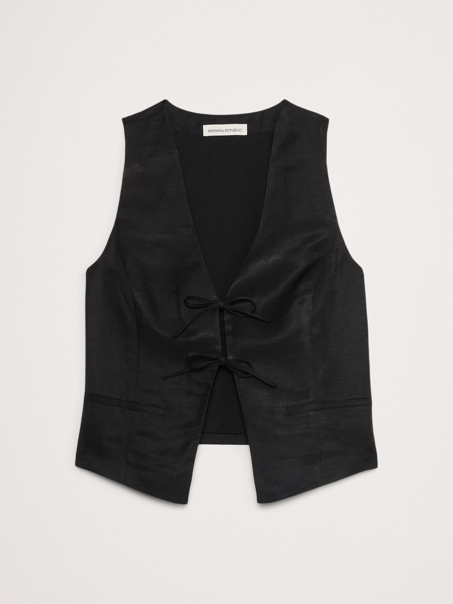 An easy tie-front vest, cut in a silky blend of viscose and linen—an ideal choice in hot, humid weather. Make it a set with the matching pant.
