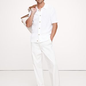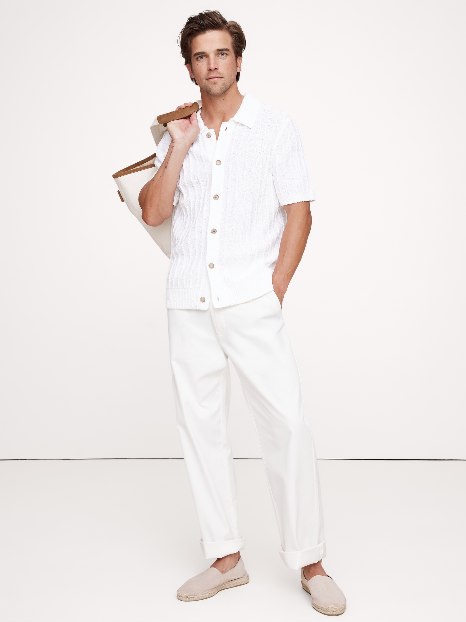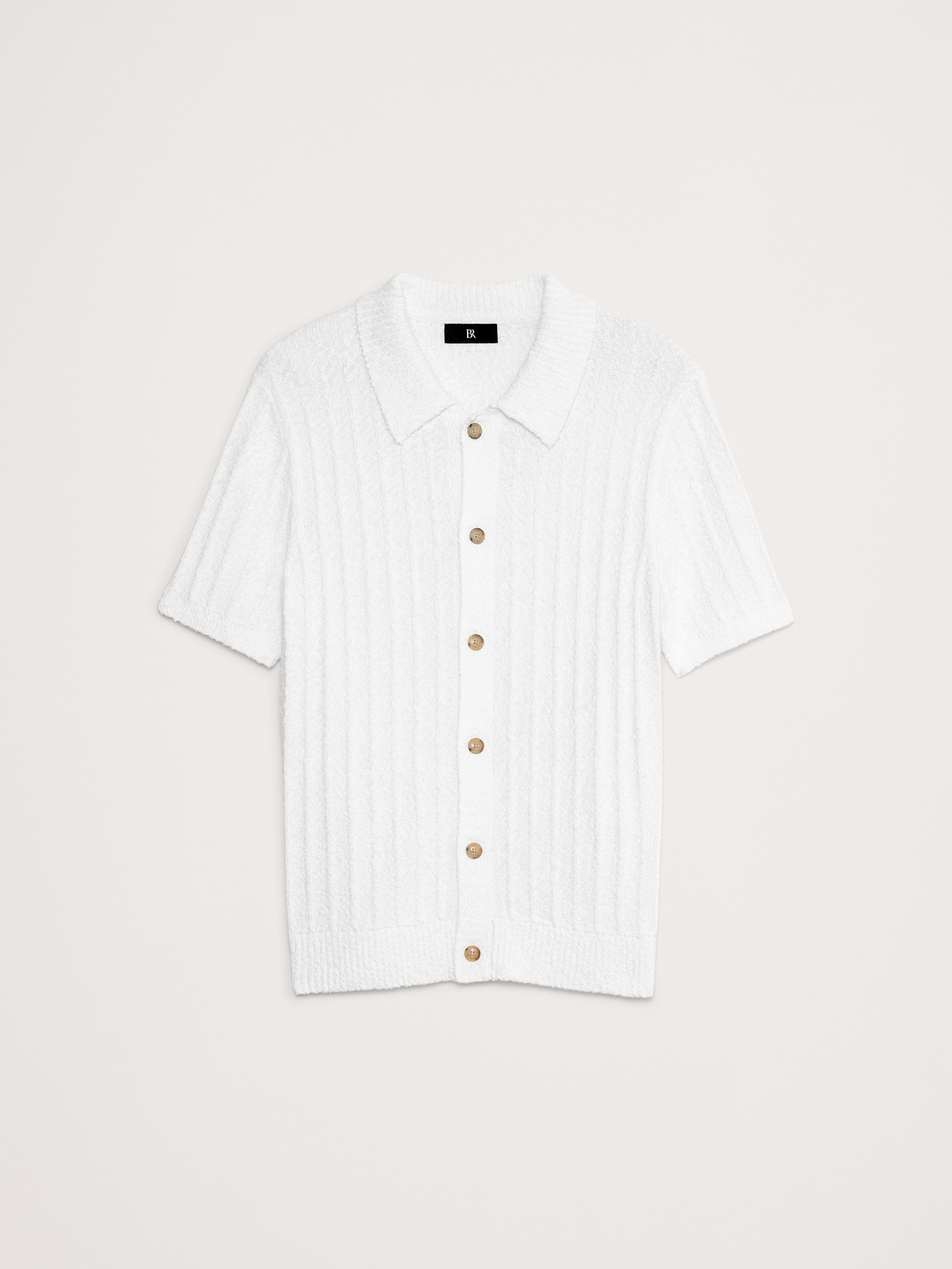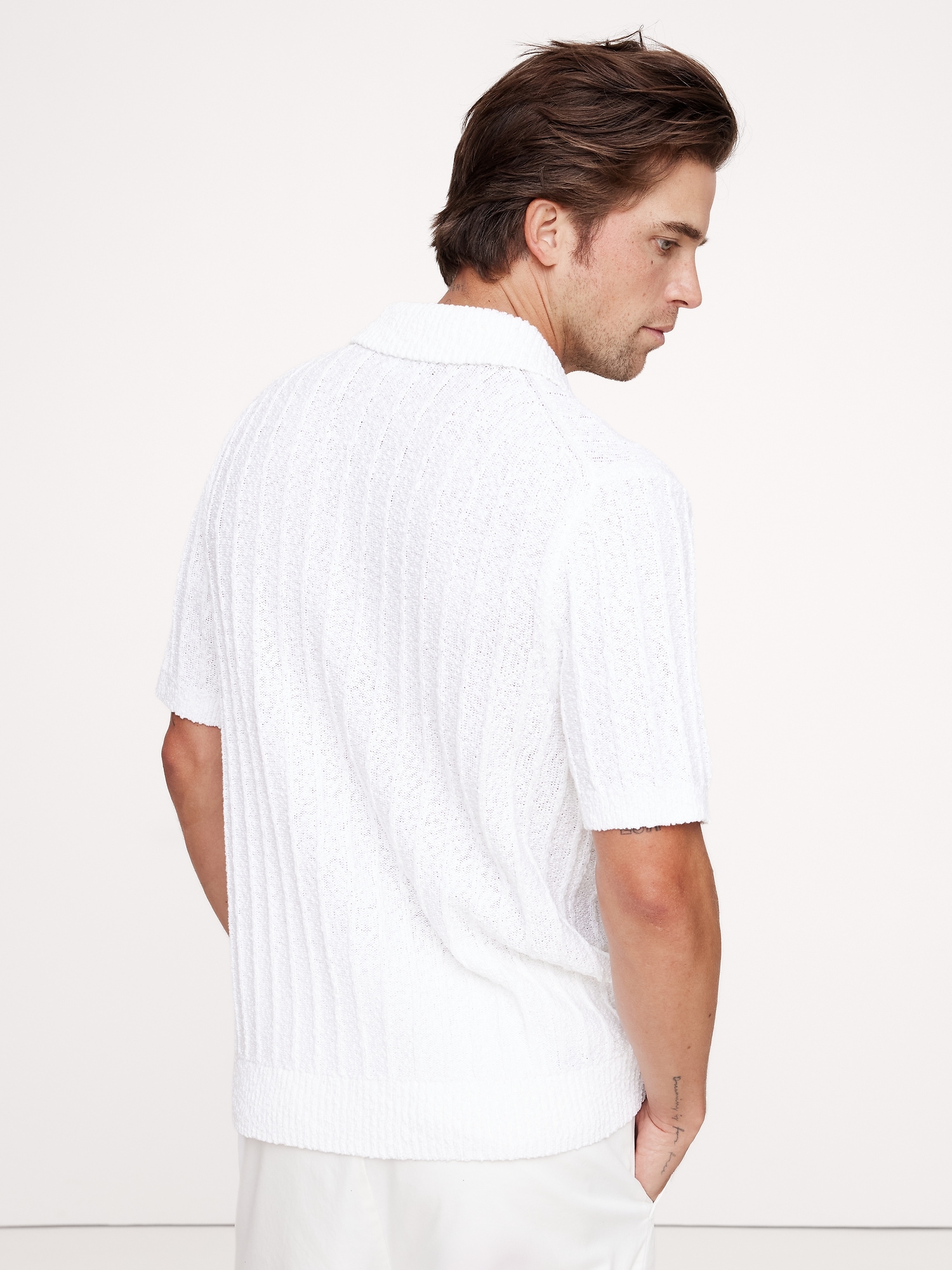 We borrowed the wide-set ribbed texture from a vintage sweater polo, recreating it here with a slub-cotton yarn for extra texture.