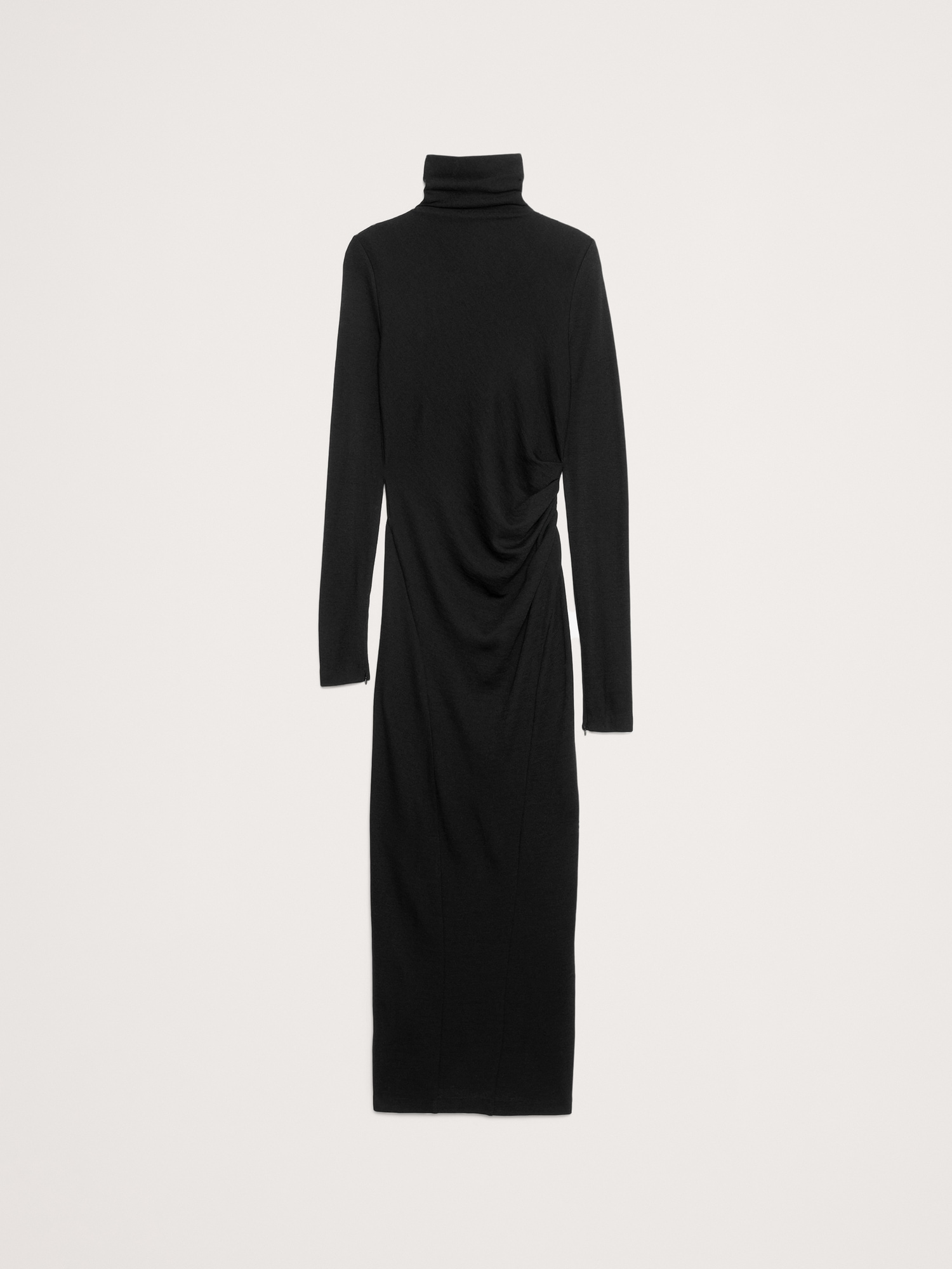 Just what we needed. This maxi dress is anything but basic thanks to ruching at the side, a paneled construction, and extra-long sleeves with zips at the cuff. Crafted in a warm wool-blend jersey so it’s t-shirt soft. Sheath Fit: Sits close to the body with a straight skirt. Crew neck. Zip detail at cuffs. Unlined. #817985